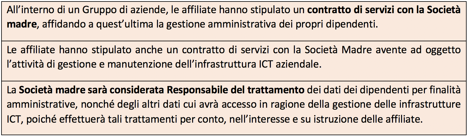 Tuttavia, in molte situazioni l’individuazione dei ruoli assunti in relazione al trattamento dei dati personali risulta incerta e complessa, come nel caso della ripartizione dei ruoli e delle responsabilità all’interno dei Gruppi di Società.